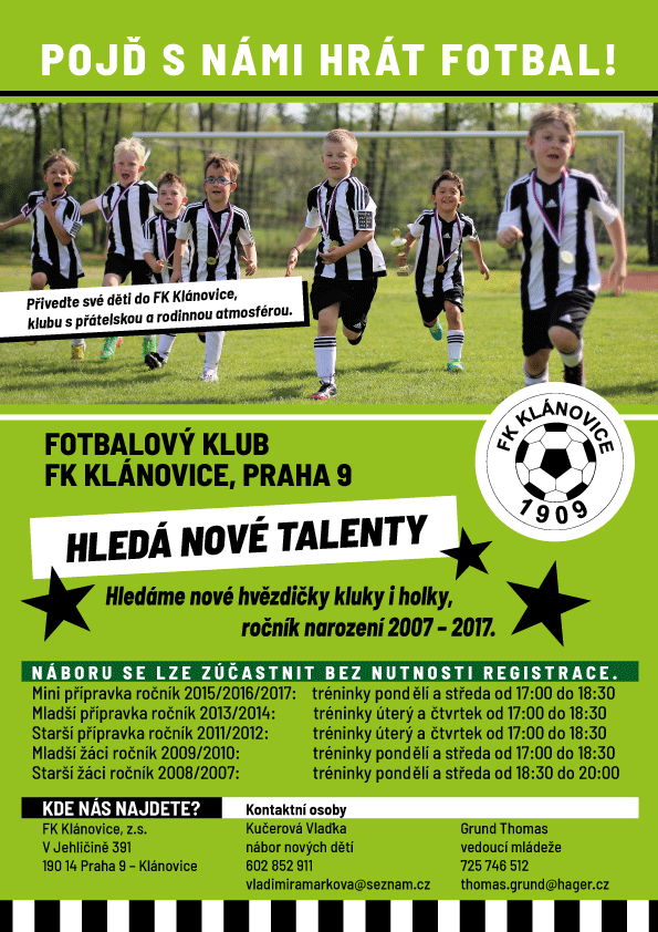 Hledáme nové hvězdičky kluky i holky ročník narození 2007 - 2017.