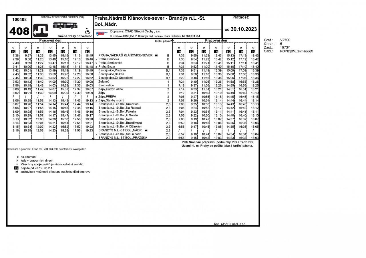 Jízdní řád autobusové linky č. 408