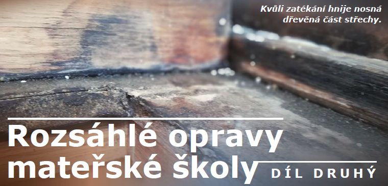 Na náklady MČ jsem následně zjistil a identifikoval závadu zatékání střešní konstrukcí, kdy při velkých deštích dochází dokonce k průsaku vody do střešní konstrukce, především v prostoru kuchyňky a chodby. Ve světlech na stropě vzniklo akvárium a museli jsme vypnout elektrické vedení v části školky.