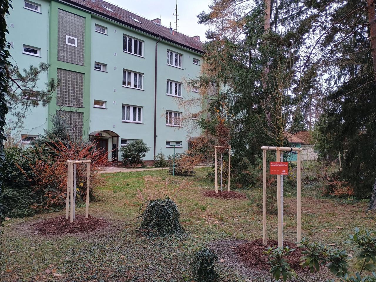 Nově vysazené habry, jeřáby, hlohy a javory v této lokalitě postupně nahradí jehličnany, které se z důvodu jejich provozní bezpečnosti musely v minulých letech pokácet.
